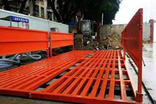3、衝洗台設置標準:衝洗台應設置於工地大門內側,長度不小於8米,寬度不小於6米,其周邊設置排水溝,排水溝與二級沉澱池相連,並按規定處置泥漿和廢水排放,沉澱池需定期清理並與市政排水管網相接。